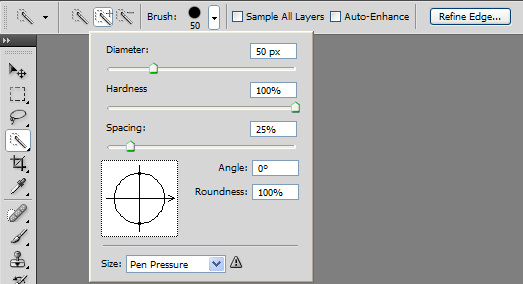 3. Set your brush size and make sure that Add to Selection (the wand with the + sign) is chosen.
